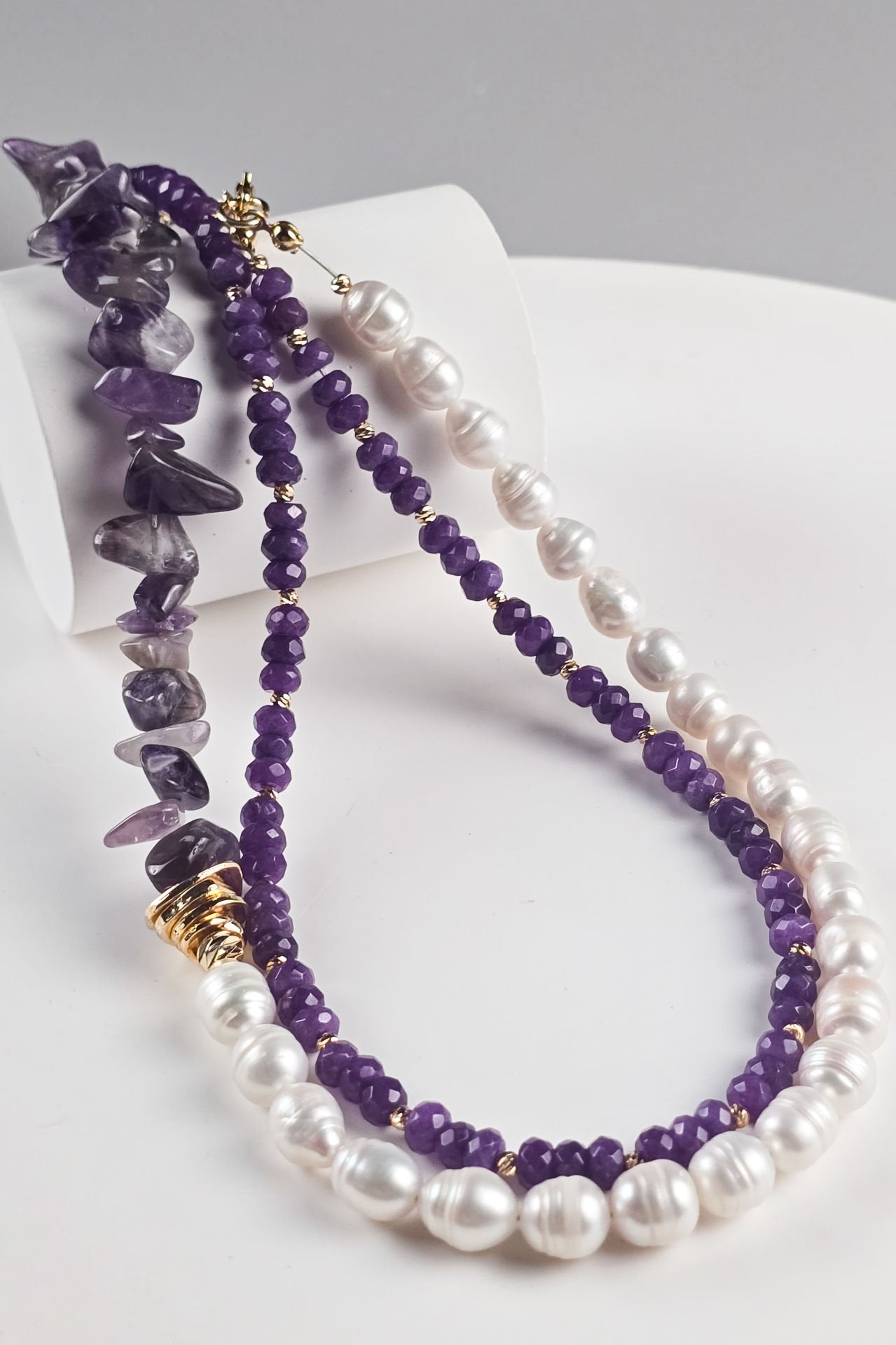Ruhun Işıltısı Ametist Çift Sıra Kolye (6.ve7.Çakra / Üçüncü Göz ve Tepe Çakrası )