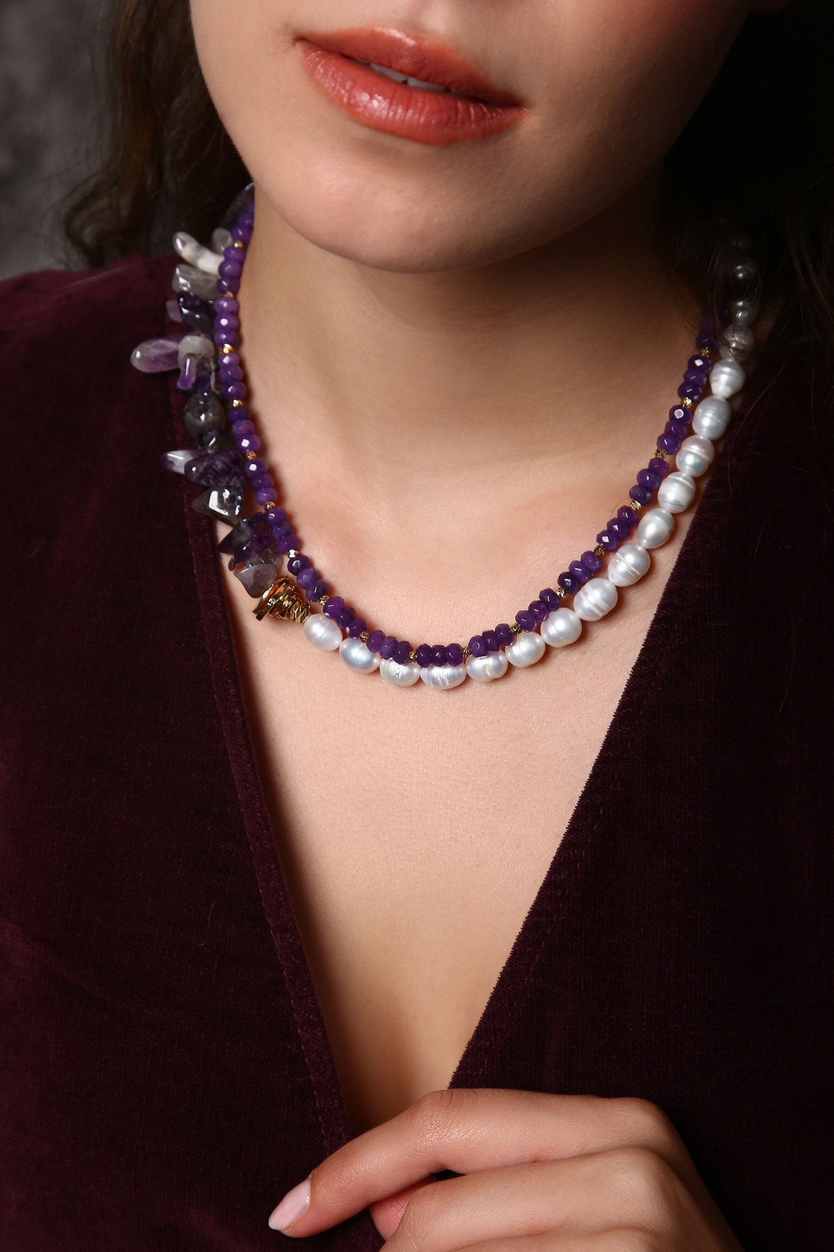 • Ametist ve İnci kullanılmıştır.