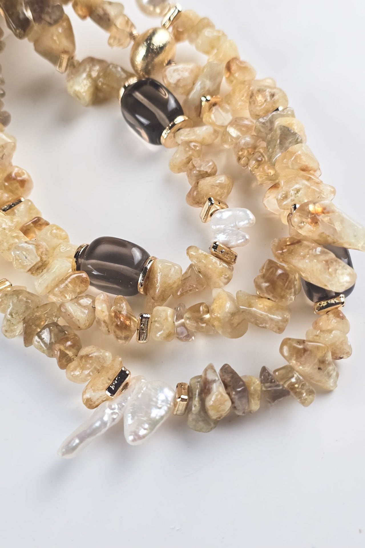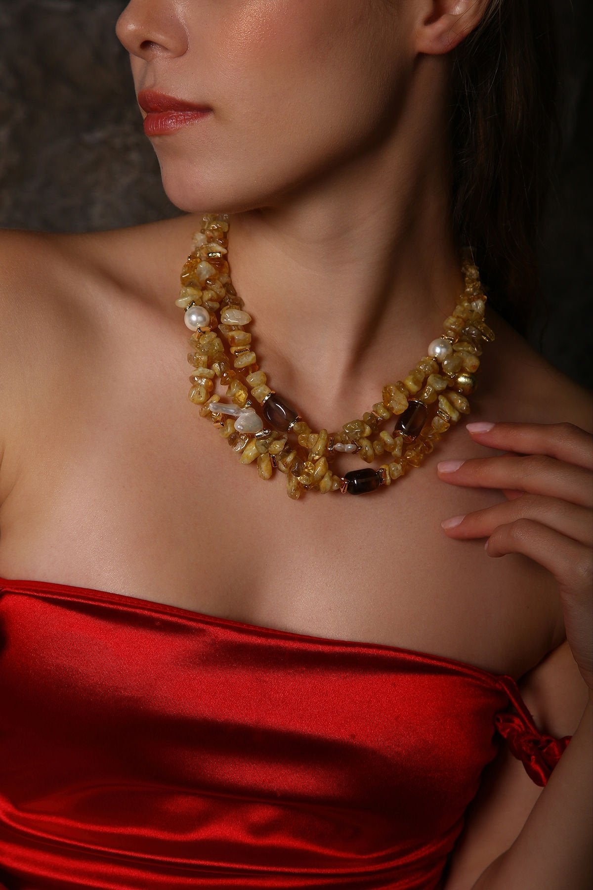 Üç Sıra Sitrin Kolye (3.Çakra/Solar Pleksus Çakra Taşı)