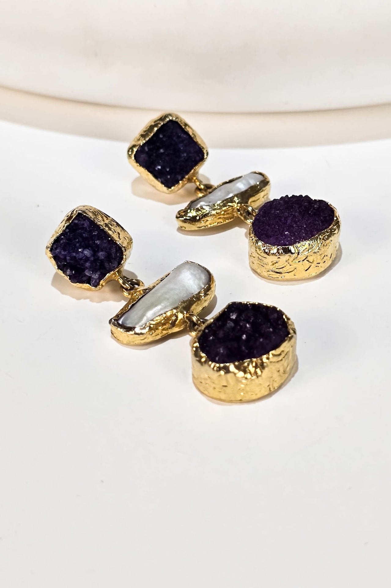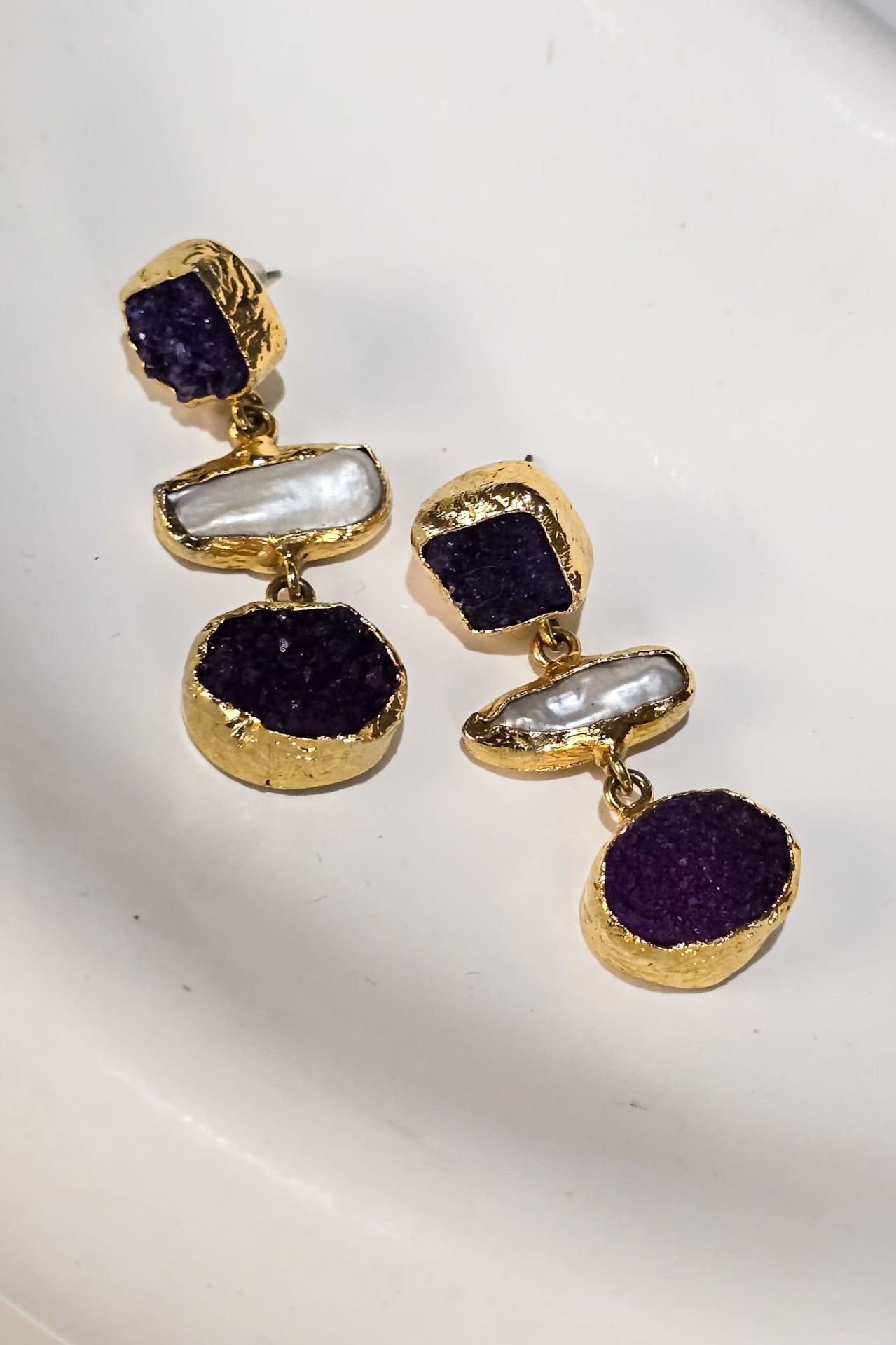 Midnight İncili Ametist Küpe