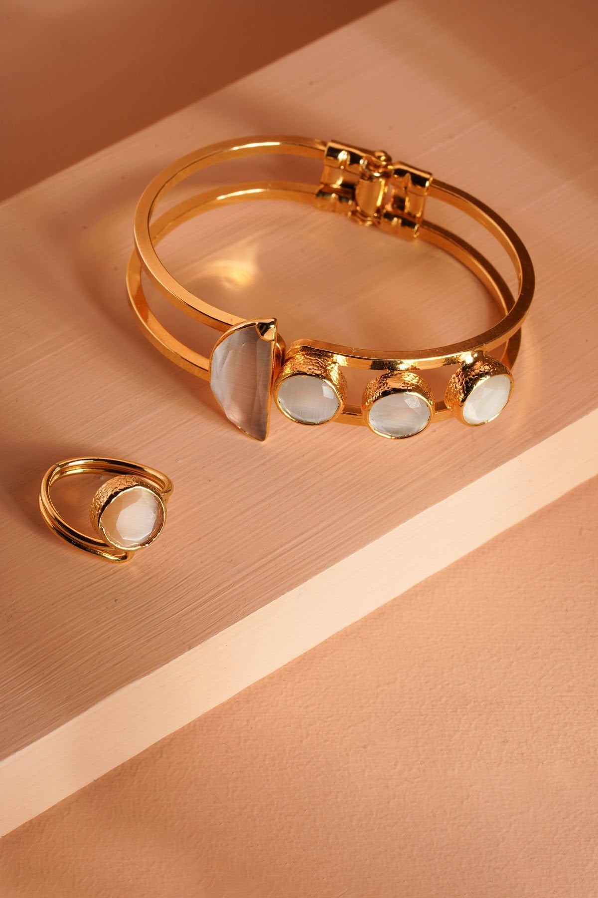 Kedi Gözü Kelepçe Yüzük Set