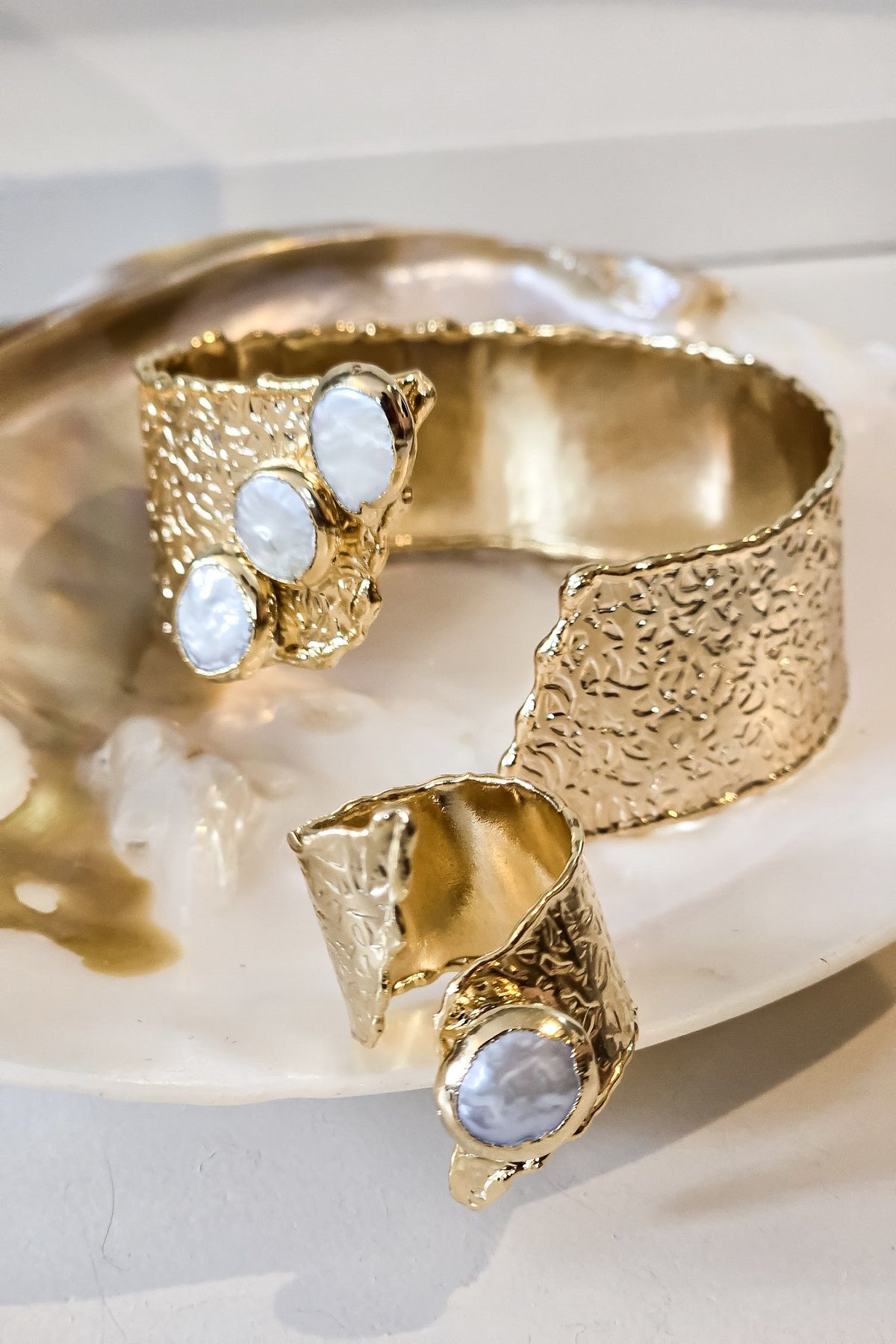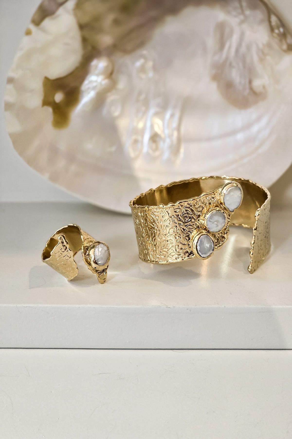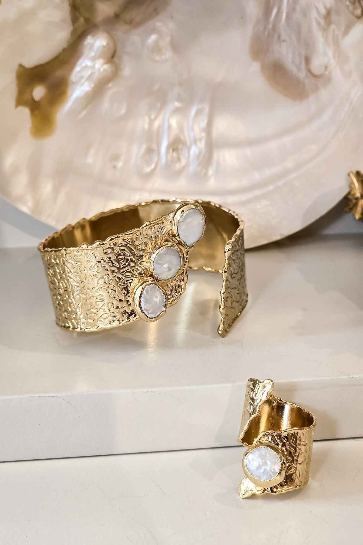 Üç Sıra İncili Bileklik Yüzük Set