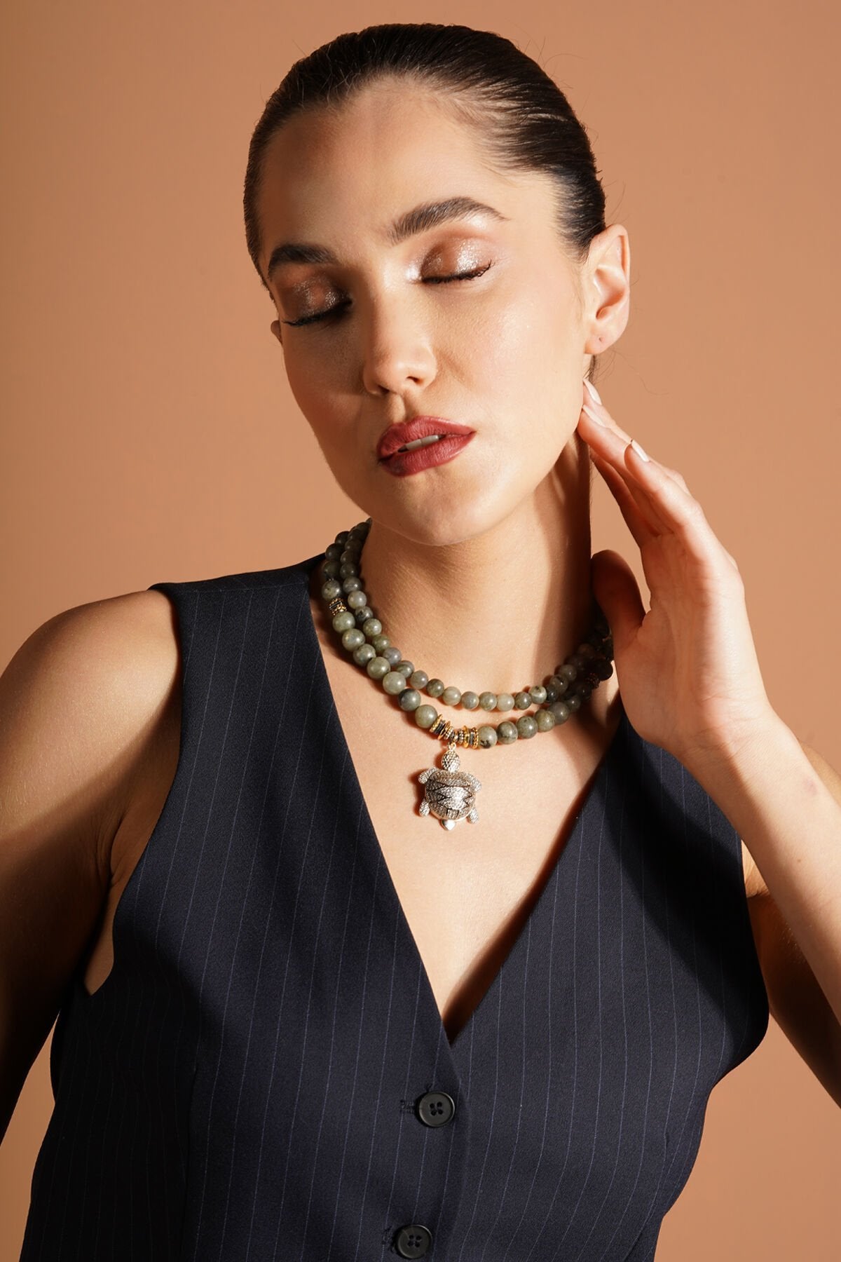 İncelediğiniz bu tasarım, sınırlı sayıda üretilen özel bir seçkinin parçasıdır. Fabrikasyon bir üretim değil; el emeği ve doğal malzemelerin (doğal taş, inci, cam) eşsiz dokusuyla hayat bulmuştur.
